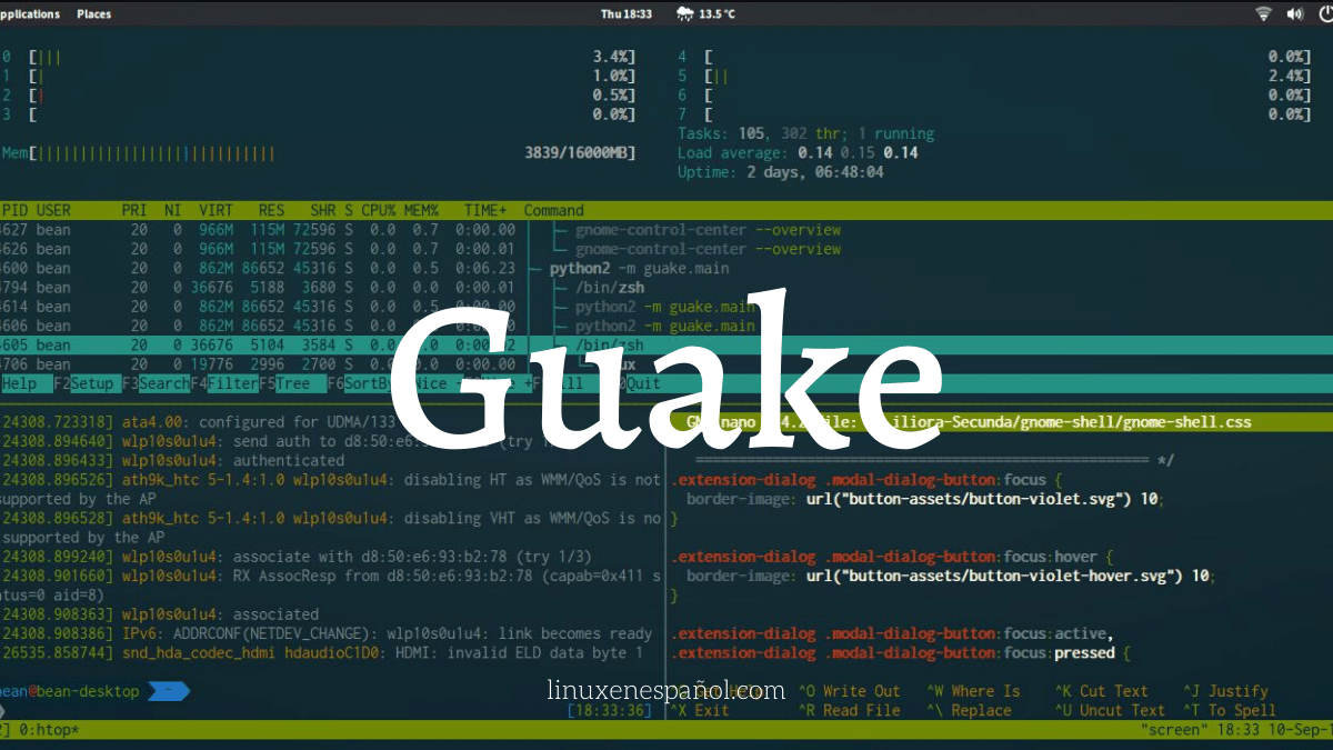 Guake es un terminal desplegable para escritorios basados en GNOME con muchas características interesantes, como funcionalidad de terminal dividida, guardar y restaurar sesión, transparencia, más de 150 esquemas de color integrados y más.